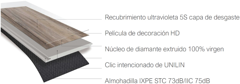 Los pisos flotantes están hechos de tableros de madera contrachapada o MDF con un recubrimiento de vinilo. Los pisos vinílicos SPC, por su parte, están hechos de una combinación de piedra caliza, PVC y otros materiales plásticos. Esta diferencia en los materiales da lugar a algunas diferencias en las características de ambos tipos de pisos.
